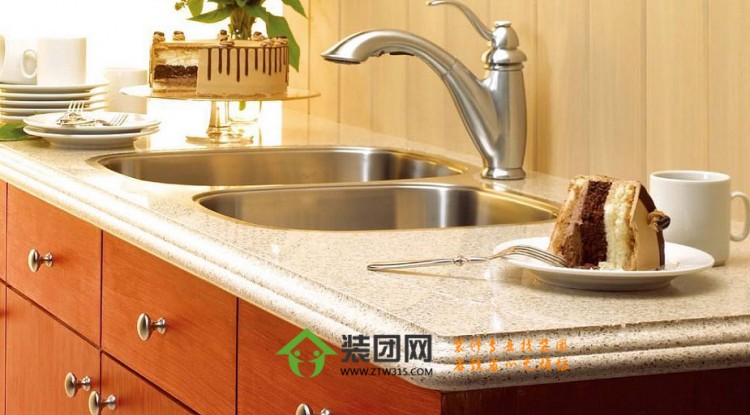2、人造石台面:即使通过人工的方法,将无机矿物材料及部分分铺料加上有机粘合剂混合后面加工而成的具有一定强度、花色的人工石材,将人工石材加工而成的台面。